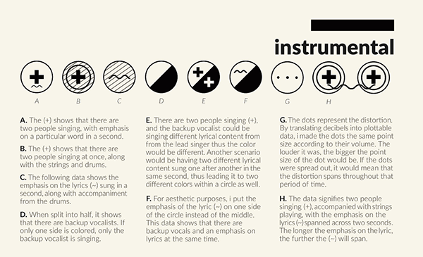 I broke down the instruments, plotted them against one another using time and volume. I tried different ways like the beat vs the vol etc to see how I could make sense of the data and make it as interesting visually as possible.